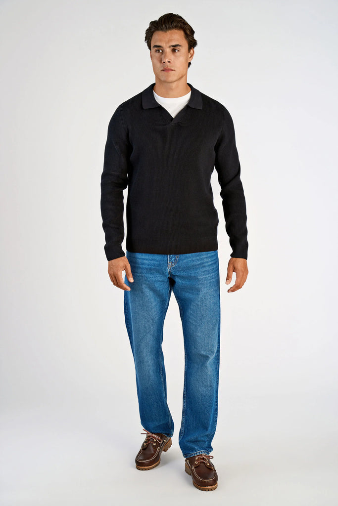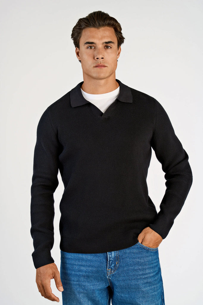 Lindbergh Rib Longsleeve Polo Black